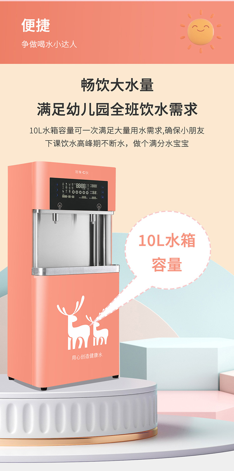 【产品型号】YX-A2RO-Y 【适用人数】40人 【额定功率】2KW 【额定电压】220V/50HZ 【水胆容量】10L 【供水量】全温开/4OL/H 【出水龙头】二温开水 【取水方式】触摸按键 【外形尺寸】560*330*1190MM 【过滤】五级过滤(RO200+2G压力桶)