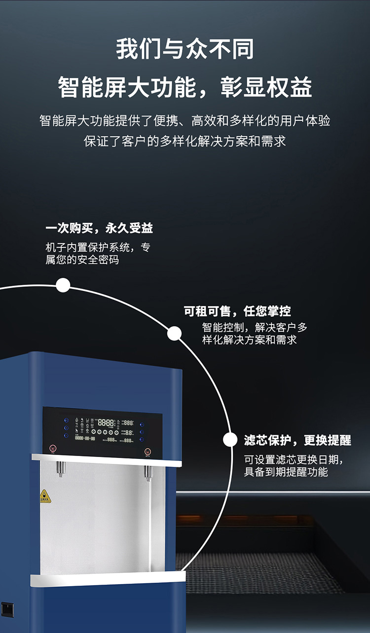 【产品型号】YX-A2RO 【适用人数】50人 【额定功率】2KW 【额定电压】220V/50HZ 【水胆容量】18L 【供水量】开水22L/H温开水88L/H 【出水龙头】一开一温开 【取水方式】触摸按键 【外形尺寸】600*430*1500MM注:不含机脚 【过滤】五级过滤(RO400+3.2G压力桶)
