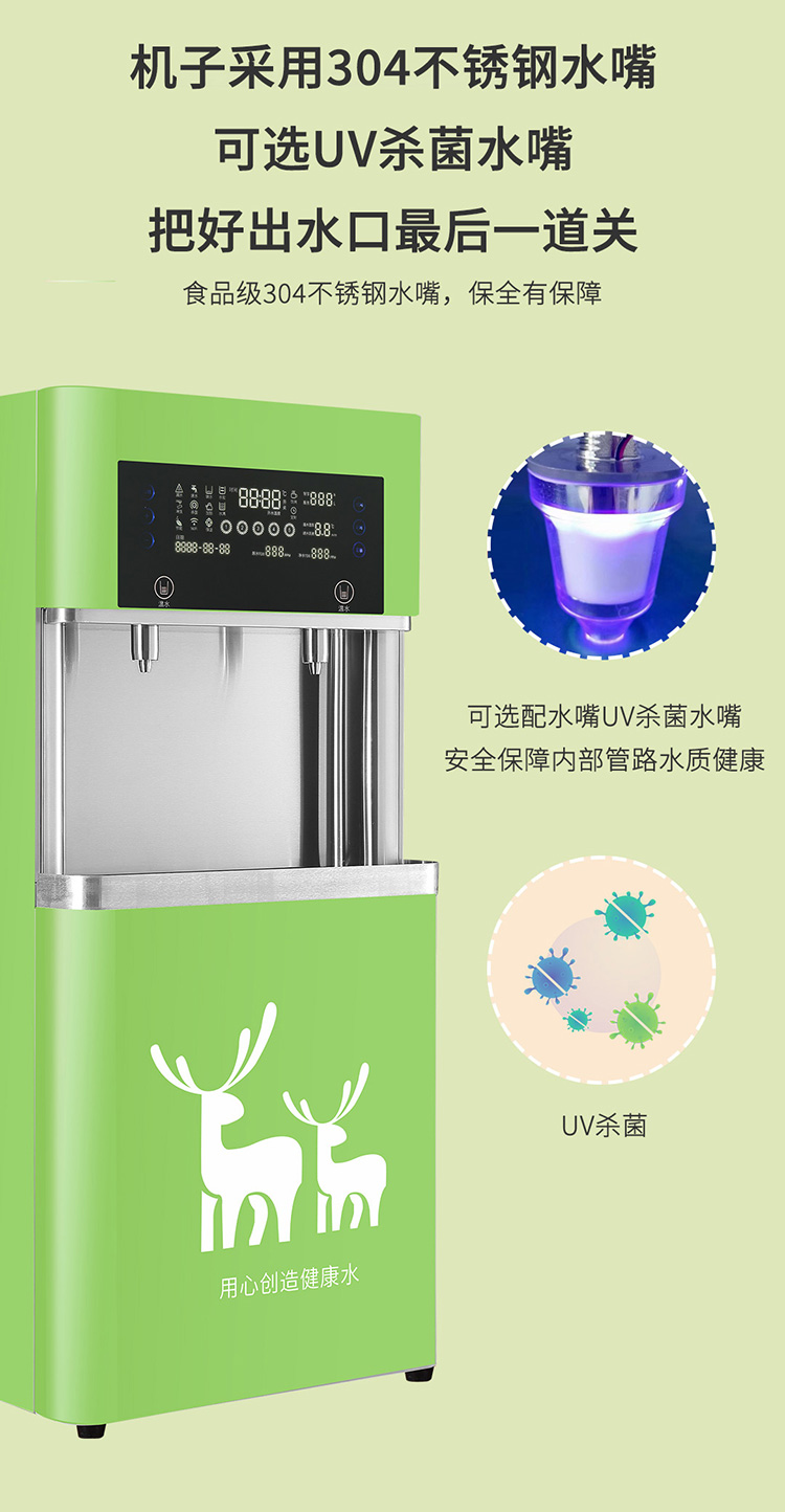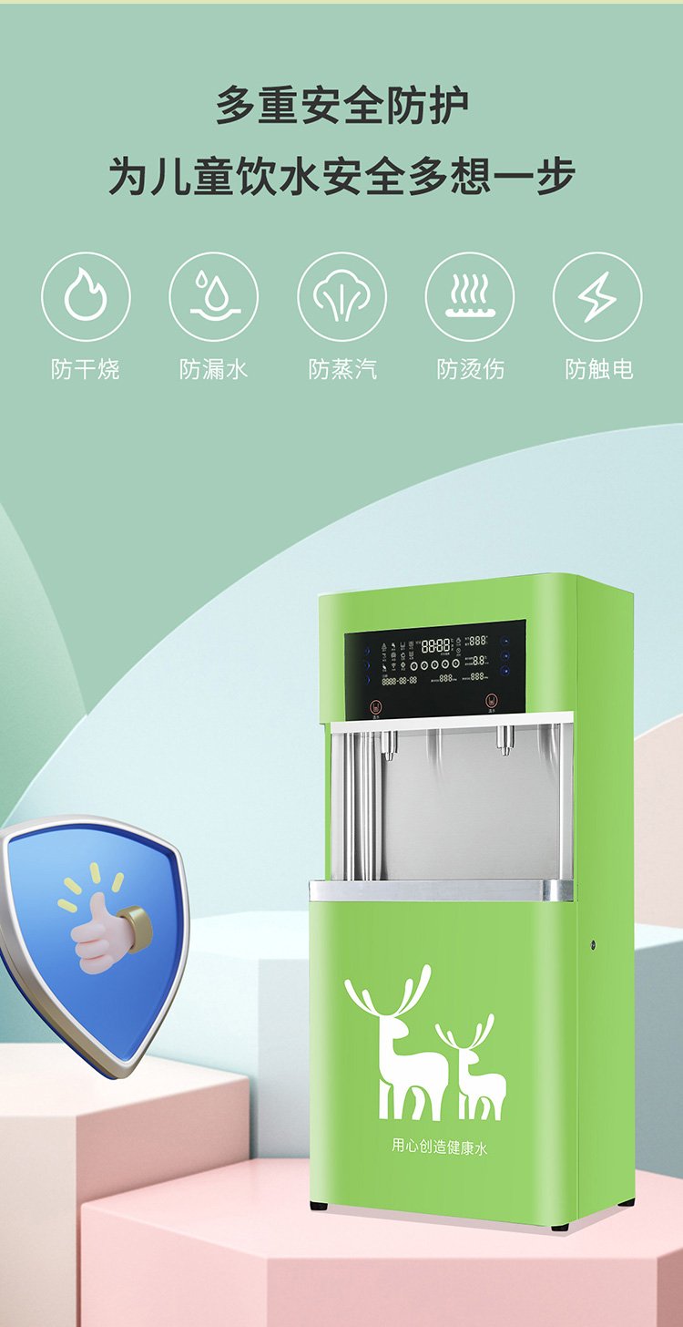 【产品型号】YX-A2RO-Y 【适用人数】40人 【额定功率】2KW 【额定电压】220V/50HZ 【水胆容量】10L 【供水量】全温开/4OL/H 【出水龙头】二温开水 【取水方式】触摸按键 【外形尺寸】560*330*1190MM 【过滤】五级过滤(RO200+2G压力桶)